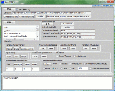 Aeroの調べ | Aero機能調査用ツール (DWM関連のAPIを単発で実行するツールです。) |