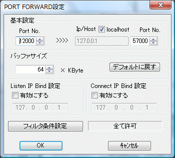 基本設定部は、Listenポート(待ち受けポート)とForwardポート(転送先ポート)の設定を行います。
